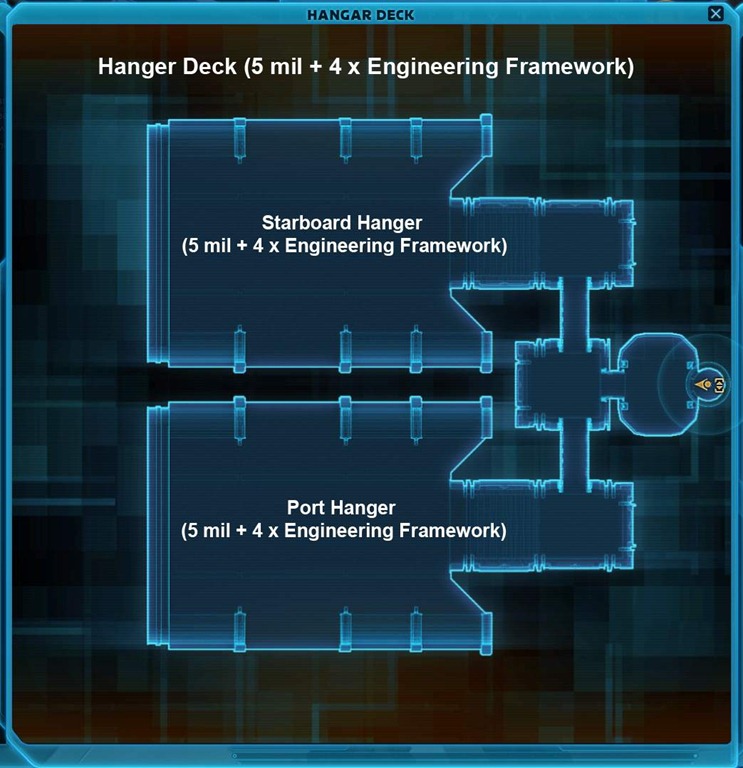 | 13 | Port Hangar | 5 mil | 4x Engineering Framework | +5 | +50 |